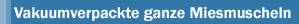 Ganze Miesmuscheln, vakuumverpackt Größen: Normal 80/100 Stück/kg Selekt 60/80 Stück/kg